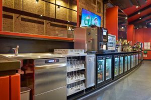 The backfitting included British-made bottle coolers, keeping bottled beers, wines and soft drinks at the optimum temperature. A separate back-of-house glasswash facility was installed to enable mess-free loading and unloading, with a DRAINERShelf directing liquid waste straight to mains drainage.